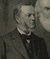 Like Daniel, most party members came from pietist churches, and most were former Republicans.[7] Elected as the head of the Maryland branch of the party, he attended the 1884 Prohibition Party National Convention in Pittsburgh.[1] After being selected as temporary chairman of the convention, the delegates chose Daniel to be nominated for vice president alongside the presidential nominee, John St. John.[2] The party platform was silent on most issues of the day, focusing instead on the alcohol problem.[2] In the election that year, the Prohibition ticket fell far short of victory, as expected, but placed third with 1.5 percent of the vote—a marked improvement over the 0.1 percent the 1880 Prohibition candidates had received. Further, their vote total in New York—just over 25,000—was more than enough to throw the election in that state from James G. Blaine, the Republican, to Grover Cleveland, the Democrat. Because pro-temperance voters usually voted Republican, many historians credit St. John and Daniel with costing Blaine the election.[8][9]