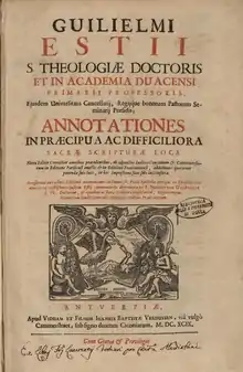 Willem Hessels van Est, Latinized as Estius (1542 – 20 September 1613), was a Dutch Catholic commentator on the Pauline epistles.