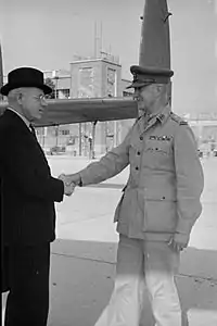 Stevens was based in Egypt from 1940 until 1944, when HQ 2NZEF was shifted to Italy.[2] He was made a Commander of the Order of the British Empire and promoted to brigadier in 1941.[1] This was followed three years later by an appointment as a Companion of the Order of the Bath.[2][9] In November 1945, he reached the pinnacle of his military career when he was appointed general officer commanding, 2NZEF, replacing Bernard Freyberg. Promoted to major-general, he oversaw the demobilisation of the 2NZEF until mid-1946.[1]