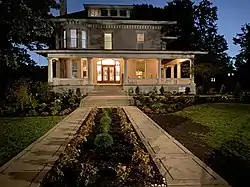 The William Copeland House was first constructed around 1873 for William H. Harman. The large, Italianate home represented a microcosm of the general character of homes in Oak Park before Wright began designing buildings. Homes of this style, "classically tinged" and "robust," dotted the landscape of small towns across the United States.[3] In 1909 the then-owner, Dr. William Copeland, a prominent surgeon with offices in Chicago and Cleveland, commissioned Frank Lloyd Wright to remodel the home.[4] It was the second commission for Wright from Copeland; in 1908 the architect had designed a garage for Copeland at the residence.[3]