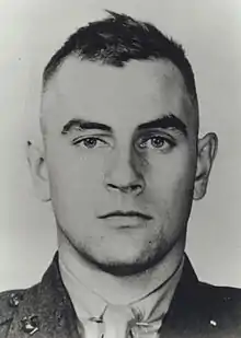 He was killed in action, at age 22, while serving as a member of an assault engineer platoon of the First Battalion, Eighteenth Marines, tactically attached to the 2nd Marine Division against the Japanese in the Battle of Tarawa, in the Gilbert Islands on November 20, 1943.[2] He single-handedly destroyed four enemy pillboxes before he was fatally wounded.[1]