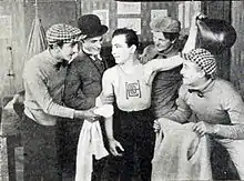 Scene in From Broadway to a Throne (1916), "written and produced by William Bowman". Carter De Haven (center) starred in the five-reeler.[18]