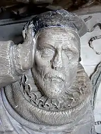 Sir William Peryam (1534–1604), detail from his monument in Crediton Church, Devon