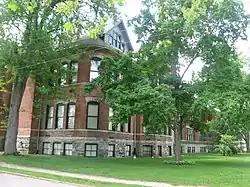William Street School, also known as Horace Mann School, is a historic school building located at Huntington, Huntington County, Indiana. The original section was built in 1895, and is a 2+1⁄2-story, rectangular plan brick building with Romanesque Revival and Queen Anne style design elements. It sits on a raised basement, has a rounded corner and projecting gable, bell tower, and has a multi-gabled slate roof. A two-story, Neoclassical style addition was built in 1926.[2]: 2–3