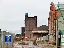 - ↑ Rishworth, Ingleby & Lofthouse Ltd. had Swan Mill built 1897 onwards.[23] Capacity was doubled by the First World War. In 1921 the company merged into Spillers. The mill was badly damaged during the Second World War. Reconstruction of the mill took place from 1948–53, including a reinforced concrete silo.[24][25]
