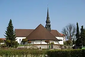 From the 2000 census, 1,328 or 68.5% were Roman Catholic, while 385 or 19.9% belonged to the Swiss Reformed Church. Of the rest of the population, there were 9 members of an Orthodox church (or about 0.46% of the population), there were 6 individuals (or about 0.31% of the population) who belonged to the Christian Catholic Church, and there were 28 individuals (or about 1.44% of the population) who belonged to another Christian church. There were 27 (or about 1.39% of the population) who were Islamic. There were 3 individuals who were Buddhist. 128 (or about 6.60% of the population) belonged to no church, are agnostic or atheist, and 25 individuals (or about 1.29% of the population) did not answer the question.[9]