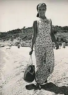Women tried to fight these definitions in the 1960s by having short hair and wearing pants.[12] In that same period, straight lines and geometric shapes began to play an important role in fashion, and more and more skin began to be exposed.[27]