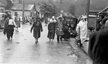 While non-native women had largely gained voting rights, Alaskan Natives still had an uncertain path to be able to vote.[9] Some indigenous women were considered citizens through their marriage to white men, but most Alaska Natives were not considered citizens of the United States.[15] The Alaska Native Brotherhood (ANB) was formed in 1912 to support the civil rights of Natives.[16] The Alaska Native Sisterhood (ANS) was formed three years later in 1915.[17] A law passed by the Territorial Legislature allowed Alaskan Natives to vote if they gave up their "tribal customs and traditions."[18] Native women largely were not able to vote after the passage of the Nineteenth Amendment because of questions about their citizenship.[19]