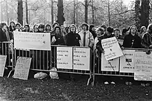 Because abortion was illegal in Spain, during the 1970s, Spanish women who could afford it went to London to get abortions.[4] Between 1974 and 1988, 195,993 Spanish women traveled to England and Wales to get an abortion. Women also went to the Netherlands in this period to have abortions. France was not an option, as at the time it required women who had abortions to be French residents and have resided in the country for at least three months. Women then needed to wait a week to reflect before they could get an abortion.[5] An unknown number of women went to North Africa and Portugal for abortions.[6] During the mid-1970s, the Catholic Church preached that no physical barrier should be present during sex, and that even post-coital washes were problematic as they interfered with the primary goal of sex being conception. The Catholic Church taught the only acceptable reproductive control methods were abstinence and the rhythm method. The Church tried to interfere in any efforts to change this.[4] In the 1970s and 1980s, feminists were the only major group demanding the government address women's needs to have access to abortion services. They played a critical role in changing public perception around abortion.[7][8][9]