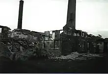 In the 1930s Wood Mill was occupied by Ashbrooks (1932) Limited (directors: Frederick Fletcher & Gertrude Fletcher), manufactures of fine art colours, pigments and chemicals. It was during this period that the larger chimney was built for the use of a boiler. This company used the building until its subsequent demise in early 1964. It was later in this year that the building was demolished, however it wasn't until a number of years later when the chimney was taken down.