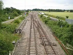 Woodborough railway station is a former railway station in Woodborough, Wiltshire, UK on the Reading to Taunton line. The line opened in 1862, providing a link to Devizes. The station closed in 1966 as part of the Beeching cuts. Today the line is still in use and the station's sidings remain in place.[2]