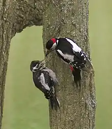 - ↑ Kotaka N, Matsuoka S (2002). "Secondary users of Great Spotted Woodpecker (Dendrocopos major) nest cavities in urban and suburban forests in Sapporo City, northern Japan". Ornithological Science. 1 (2): 117–122. doi:10.2326/osj.1.117.