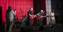 The following evening, Jimmy LaFave and friends officially opened the 2013 festival with Walking Woody's Road at the Crystal Theater in Okemah.[73] The musical and spoken-word event, produced by LaFave, included performances by Sam Baker, The Red Dirt Rangers, Audrey Auld, The Burns Sisters, Ronny Elliot, David Amram, Ronny Cox, Annie Guthrie, Butch Hancock, Radoslav Lorkovic, and Joel Rafael. The band for the evening included Glenn Schuetz (bass), Bobby Kallus (drums), Terry "Buffalo" Ware (guitar/mandolin), and Lorkovic (piano/accordion). LaFave, Cox, and several others provided narration consisting of excerpts from Woody's writings.[73]
