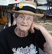A non-musical highlight of the centennial celebration included a book-signing event by Woody Guthrie's sister, Mary Jo Guthrie Edgmon who published her new book "Woody's Road: Woody Guthrie's Letters Home, Drawings, Photos and Other Unburied Treasures" earlier in the month. Musician David Amram - who wrote the foreword to the book - was on hand for the book signing, along with co-author and Woody Guthrie historian, Guy Logsdon.[68] At her annual pancake breakfast on Saturday morning, 89-year-old Edgmon said "My voice is not so good anymore. I'm talking through brand-new false teeth. But I applaud the people who came here to swelter, just for this little Okie."[69]