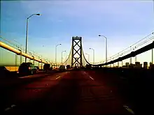 The San Francisco – Oakland Bay Bridge, a fictional squatted version of which formed the setting for Gibson's short story "Skinner's Room" (1990). He would later revisit the setting in his Bridge trilogy of novels.