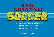 World Championship Soccer (ワールドカップサッカー) is a soccer game running on Sega's Mega-Tech[1] arcade cabinet system and was released as one of the first games for the Sega Genesis system in North America in September 1989.[2]