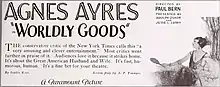 Worldly Goods is a 1924 American silent comedy film directed by Paul Bern and written by Sophie Kerr and A. P. Younger. The film stars Agnes Ayres, Patrick H. O'Malley, Jr., Victor Varconi, Edythe Chapman, Bert Woodruff, Maude George, and Cecille Evans. The film was released on November 24, 1924, by Paramount Pictures.[1][2][3]