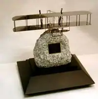 The Wright Brothers Memorial Trophy was established by the National Aeronautic Association (NAA) in 1948 after a trust fund was created in 1936 by Godfrey Lowell Cabot of Boston, a former president of the NAA. It is awarded to a living American for "significant public service of enduring value to aviation in the United States."[1] The presentation of the award is made annually at the Aero Club of Washington, as close as possible to December 17 each year,[2] the day on which, in 1903, the Wright brothers made the first flight in an airplane.[3] The inaugural recipient of the trophy was William F. Durand, "a pioneer in aeronautics, naval propulsion and engineering research methods".[4] Until 2010, winners of the award received a trophy depicting the Wright brothers' Wright Flyer aircraft.[5] From 2010 onwards, a redesigned trophy featuring a silver obelisk and bronze inscription has been awarded.[1]