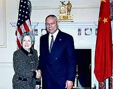 During the SARS crisis, she replaced Zhang Wenkang, who had been fired for his role in the cover-up of the crisis, as health minister. She headed a committee to solve the crisis.[1] She was called the "Goddess of Transparency" by Time magazine for her leadership during the SARS crisis and named one of the Time 100 Most Influential People of 2004.