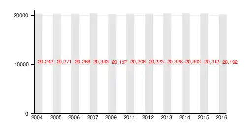 According to the Central Statistical Office data, the district's area is 23.82 square kilometres (9.20 square miles) and 20 303 people inhabit Wzgórza Krzesławickie.[2]