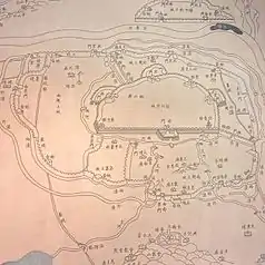 Yet, the local navigation was considerably constrained by two Rapids: the Xuzhou Rapids (徐州洪), a kilometer southeast of the city, and the Lüliang Rapids (呂梁洪), another 24 kilometers further south.[45] The remedy provided by the Ministry of Works is constructing the Jia Canal, which paralleled the treacherous stretch of Xuzhou. However, the canal completed in the 1600s ravaged the city. Not only it disrupted the former drainage system, but also depressed the local economy.[46] Prior to the recession, flooding and the famines followed struck Xuzhou frequently.[47] The worst flooding occurred in 1624: it was immersed up to 1 zhang and 3 chi (about 4m) within the city.[48]