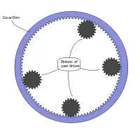 Gear rim and pinions