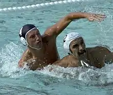 Yevgeny Borisovich Grishin (Russian: Евгений Борисович Гришин, born 1 October 1959) is a retired Russian water polo defender. He was part of the Soviet teams that won gold medals at the 1980 Olympics, 1982 World Championships, and 1983 and 1985 European championships, and placed third at the 1986 World Championships and 1988 Olympics. Grishin was coached by his father Boris, who is also a retired Olympic water polo defender.[1] His mother Valentina and sister Yelena are Olympic fencers.[2]