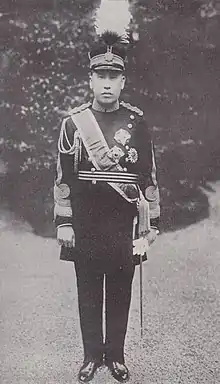 Prince Yi Kang was appointed special ambassador to the Empire of Japan for the celebration ceremonies for Japan's victory in the First Sino-Japanese War of 1894-1895.[8] According to Yun Chi-ho, who met Yi before going Europe, assessed him as a smart 18 years old who had a good personality like his father but worried to study abroad.[9] In August 1895, Yi was appointed as Special ambassador and visited some European countries including, the United Kingdom, Germany, France, Russia, Italy and Austria-Hungary.[8] In 1899, he in Japan. According to Japanese record, 3,000 Won was sent for Yi.[10] While he was not in Korea, Yi Kang was promoted to the rank of Prince Imperial Ui, and styled His Imperial Highness in 1900.[11] At the same year, he went to the United States and began studies at Roanoke College in Salem, Virginia from March 1901, where he majored in mathematics.[12] While he was in the United States, the Korean Government gave him 30,000 Won in 1902.[13] While in America, Yi was beaten by some Americans in 1903.[14] In 1904, some Korean foreign students tried to dethrone Gojong and make Yi the emperor.[15] After graduation, he spent a brief period at the Ohio Wesleyan University in Delaware, Ohio, and then traveled to San Francisco and Hawaii, returning to Korea on 15 March 1906.[12][16] Same year, he got Order of the Golden Ruler.[17] On 8 April 1906, Yi was appointed as Lieutenant General (부장).[18] He was appointed as Chanmogwan and was ordered to participated in the Military parade in Empire of Japan.[19] He received 1st class of Order of the Paulownia Flowers from the Japanese Government while he was in Japan.[20]