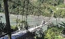 Gandhi Bridge (a makeshift swinging bridge) over the Siang river, made of cane and bamboo. It is a major tourist attraction across Siang river.