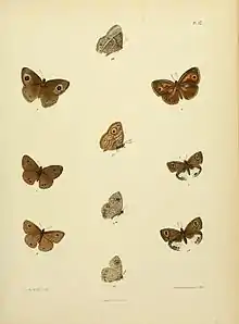 | Ypthima, plate 12 from Frederic Moore's The Lepidoptera of Ceylon. Y. avanta is shown in figures 3, 3a, 4 and 4a. | |