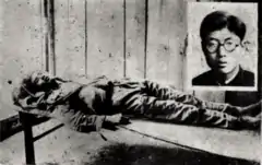 ![]() The dead body of Yu Zisan at the Hangzhou Garrison Headquarters  | |