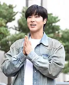 Yunho was inducted into the Republic of Korea Armed Forces on July 21, 2015.[39] He received five weeks of basic training at Yangju, Gyeonggi Province, and was the leader of his squad. A completion ceremony for the recruits was held on August 27, and Yunho was awarded with the "Best Recruit" honor.[40] Yunho officially joined the military band for the 26th Mechanized Infantry Division on August 31.[41] He was honored as a Special Warrior on May 9, 2016.[42] Yunho was honorably discharged from service on April 20, 2017.[43][44]