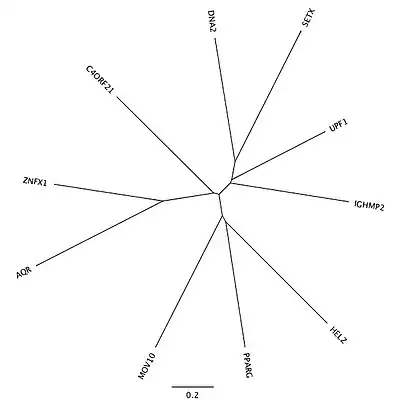- ↑ Fairman-Williams ME, Guenther UP, Jankowsky E (Jun 2010). "SF1 and SF2 helicases: family matters". Current Opinion in Structural Biology. 20 (3): 313–24. doi:10.1016/j.sbi.2010.03.011. PMC 2916977. PMID 20456941.