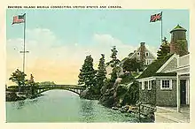 Zavikon Island(s) showing "international bridge" with Canadian, Hungarian and American flags