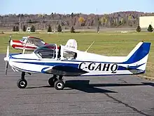 Heintz migrated to Canada in 1973,[2] and set up Zenair in 1974 to sell plans and kits of the Zénith.[3] The Zenith, which gained the designation Zenith CH 200 when Heintz produced plans for larger and smaller derivatives, is a low-winged cantilever monoplane of all metal construction. The pilot and passenger sit side by side under a clear, sideways-opening plexiglas canopy, while the aircraft is fitted with a fixed nosewheel undercarriage. It is designed to be powered by a single piston engine of between 85 and 160 hp (63.5 and 119 kW).[4]