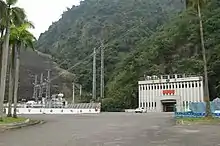 The Zengwen hydroelectric power station was constructed underground in the south (left bank) of the dam and required the excavation of 16,800 cubic metres (590,000 cu ft) of earth and rock, and 7,300 cubic metres (260,000 cu ft) of concrete treatment. The facilities were constructed using the cut and cover method. The 389-metre (1,276 ft) Tongda tunnel was built to allow workers and equipment to access the plant after it had been completed.[6] The power station's single 50,000 kilowatt generator first came online in October 1973. The average annual power generation is 184,900,320 kilowatt hours. Because dam releases are determined by irrigation and domestic water supply needs, power generation is secondary (incidental) and does not always correspond to demand on the grid.[14]