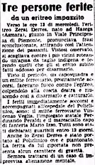 - 1 2 3 "Tre persone ferite da un eritreo impazzito". Il Messaggero (in Italian). 1938-06-17. p. 4.