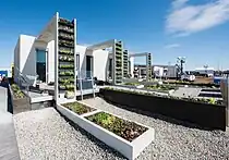 There are strong similarities between zero carbon cities and eco-cities. Discussions of eco-cities tend to focus more broadly on social and environmental issues, with less emphasis on carbon monitoring and the necessity of reaching net zero energy balance.[20] Many of the principles proposed for developing eco-cities are also relevant to net zero cities, including revising land use priorities to create sustainable mixed-use communities; revising transportation priorities to favor foot, bicycle, cart and public transit over automobiles; increasing environmental awareness; supporting local agriculture and community gardens; and promoting recycling and resource conservation.[26]