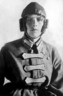 Zinaida Petrovna Kokorina (Russian: Зинаида Петровна Кокорина; born 1898 – 1980)[1] was a Russian schoolteacher and aviator. In 1925, she became the world's first female military pilot[2] when she graduated from the Military Aviation School in Yegoryevsk near Moscow. Although she wanted to become a fighter pilot, given her excellent examination results, she was encouraged stay on at the school as an instructor, training some of Russia's most successful female World War II pilots, including Nina Raspopova. She later spent 30 years as headmistress of a village school at Cholpon-Ata in Kyrgyzstan. On her retirement, she returned to Moscow.[3][4]