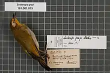 - ↑ BirdLife International (2016). "Zosterops grayi". IUCN Red List of Threatened Species. 2016: e.T22714100A94401587. doi:10.2305/IUCN.UK.2016-3.RLTS.T22714100A94401587.en. Retrieved 12 November 2021.