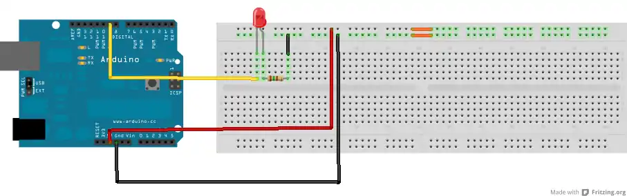 The second new concept is the “analogWrite” function. This is the function that writes an analog value (PWM wave) to a pin. As such, it requires two arguments: first, the relevant pin and, second, a value between 0 and 255. Since a call to analogWrite() is made on a scale of 0 - 255, analogWrite(pin, 255) requests a 100% duty cycle (always on) and analogWrite(pin, 127) a 50% duty cycle (on half the time) for example. It can be used to light an LED at varying brightnesses, like we do here, or drive a motor at various speeds, among other things.