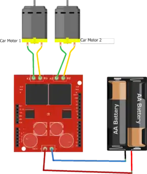Connect Motor1 to the A1:B1 pin and Motor2 to A2:B2 pin