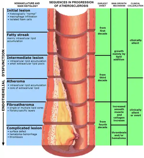 Atherosclerosis is a disease characterized by the buildup of plaque inside the arteries. [1] Plaque is made up of fat, cholesterol, calcium, and other substances found in the blood. Coronary artery disease (CAD), is atherosclerosis of the coronary arteries. [2] The cause of atherosclerosis is not known. Smoking, diet, physical activity, and genes influence the risk of atherosclerosis. [1] Atherogenic infections have been associated with atherosclerosis in animals. [3]