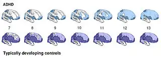 Evaluations of the patient in academic or workplace settings as provided by parents, teachers, employers, etc. is the most common method of diagnosis. The root causes of these attentional and other difficulties is a major subject of research. A genetic influence has been suggested, most of which relate to genes pertaining to specific brain functions and circuits. For instance, the growth of cortical projections (especially in the prefronal regions) during normal intellectual development may be somewhat lagging behind in individuals with ADHD. This also helps account for how the symptoms of ADHD tend to change with age, with many patients reporting improvement in impulse control but still lingering lapses in attentional focus.