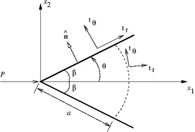 - The traction is infinite since the force is applied on zero area. Consider equilibrium of a portion of the wedge.
