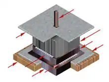 The metallic bearing support shown on the right may be adapted, with certain precautions, as a seismic isolator to skyscrapers and buildings on soft ground. Recently, it has been employed for a housing complex (17 stories) in Tokyo, Japan.