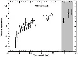 - 1 2 3 4 5 6 7 Ai Kanno; Takahiro Hiroi; Ryosuke Nakamura; Masanao; Masateru Ishiguro; Sunao Hasegawa; Seidai Miyasaka; Tomohiko Sekiguchi et al. (2003). "The first detection of water absorption on a D type asteroid". Geophysical Research Letters 30 (17): 1909-12. doi:10.1029/2003GL017907. http://www.planetary.brown.edu/~hiroi/GRL2003Kanno.pdf. Retrieved 2014-01-09.