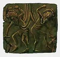 This is an illustration of the Mississippian culture Upper Bluff Lake Dancing Figures. Credit: Herb Roe.