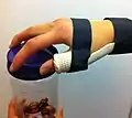 - The straps are positioned appropriately, applying a three-point force system to maintain the required wrist position.