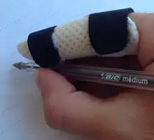 - • Permanent side of straps placed lateral to index finger (allow more space for adjustment medially)